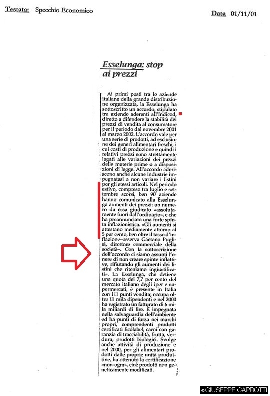 10) Il 2001 segnava anche l’inizio della guerra dei prezzi contro Coop (v. Esselunga contro Coop)