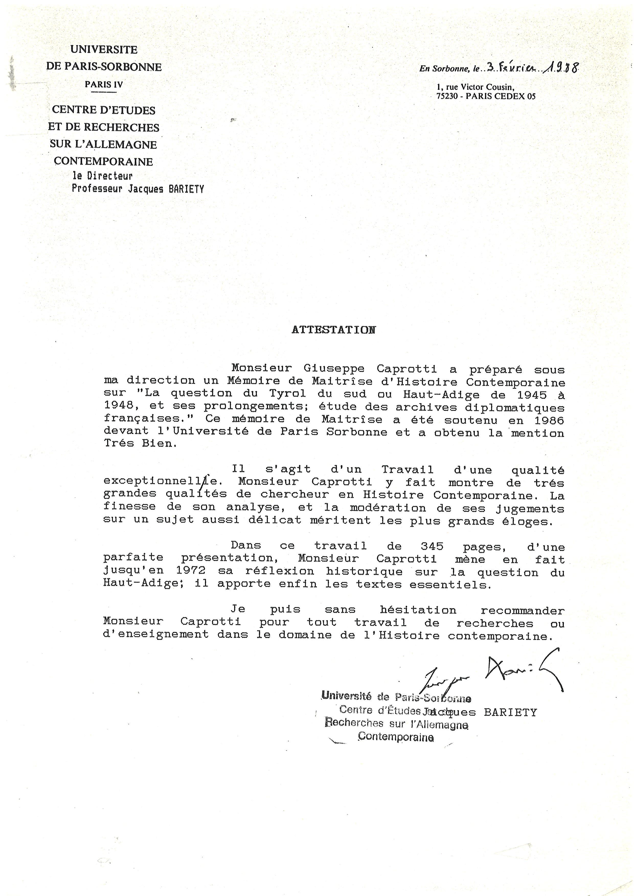 Jacques Barièty, La Sorbona, Parigi 1987