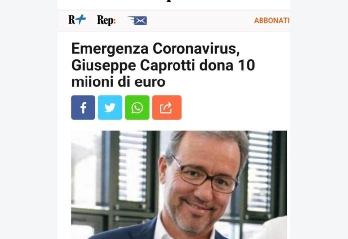 17 Marzo 2020 Giuseppe Caprotti ha deciso di donare, da privato, 10 milioni di euro per istituire un fondo a…