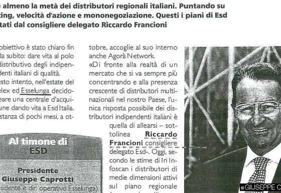 “Ora ESD Italia è la prima Centrale d’acquisto italiana, con una quota di mercato del 21,8%… A nome del Consiglio di Amministrazione di ESD Italia, dei Presidenti dei Gruppi Soci e personalmente, Le esprimo sincera gratitudine per la lungimirante decisione che prendemmo insieme quindici anni fa” Riccardo Francioni, dicembre 2016