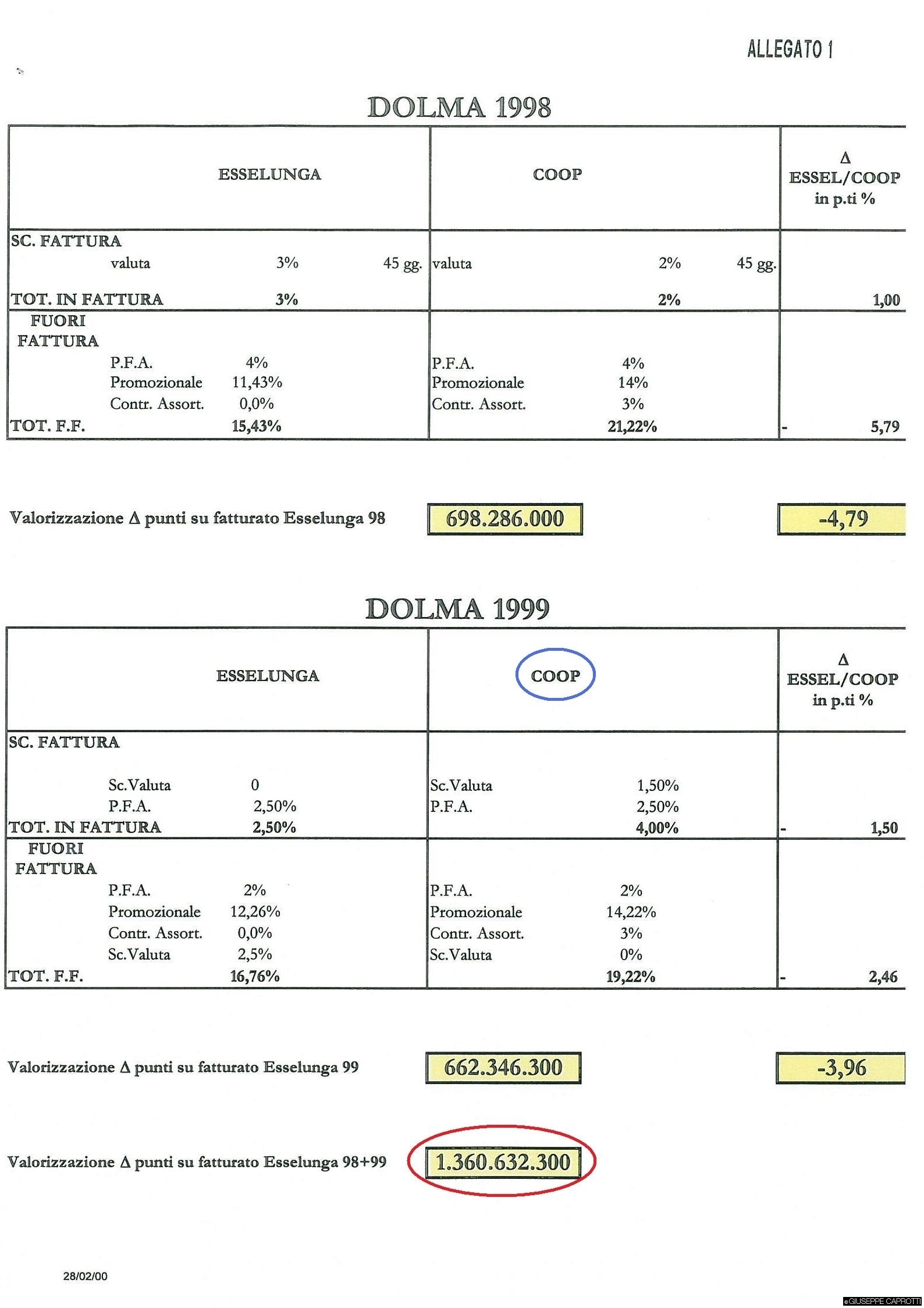 Un funzionario uscito malamente da Dolma ci aveva mandato i dati di raffronto con la Coop