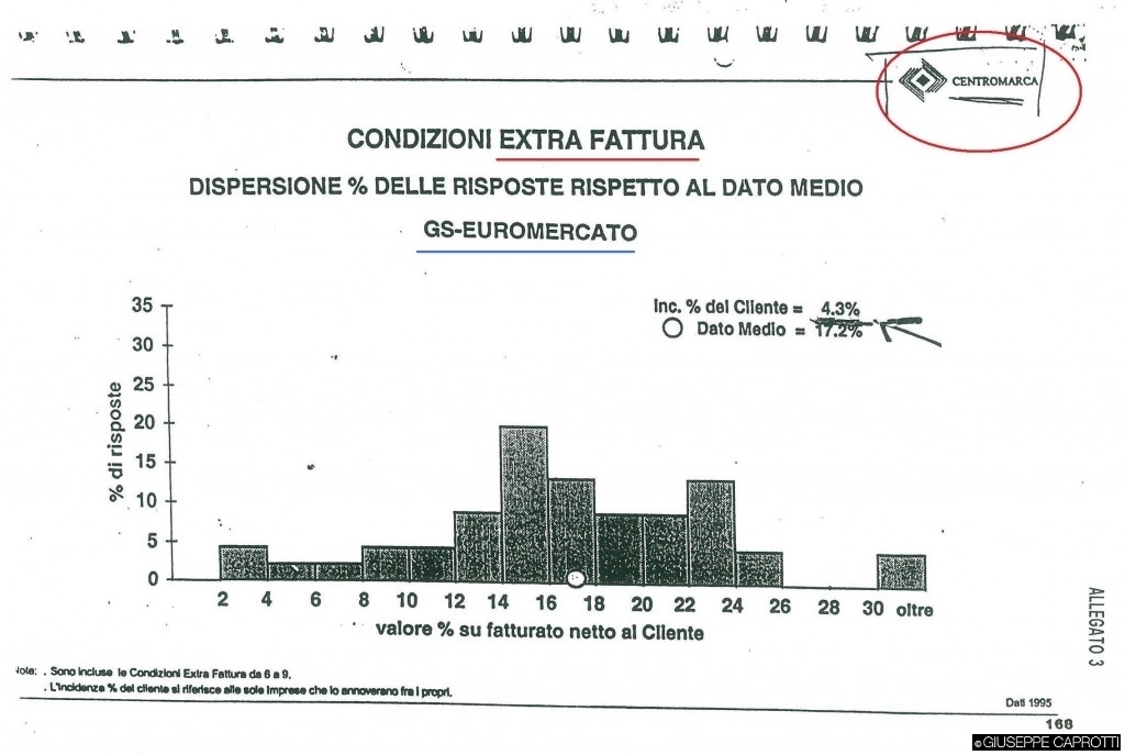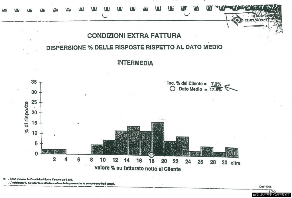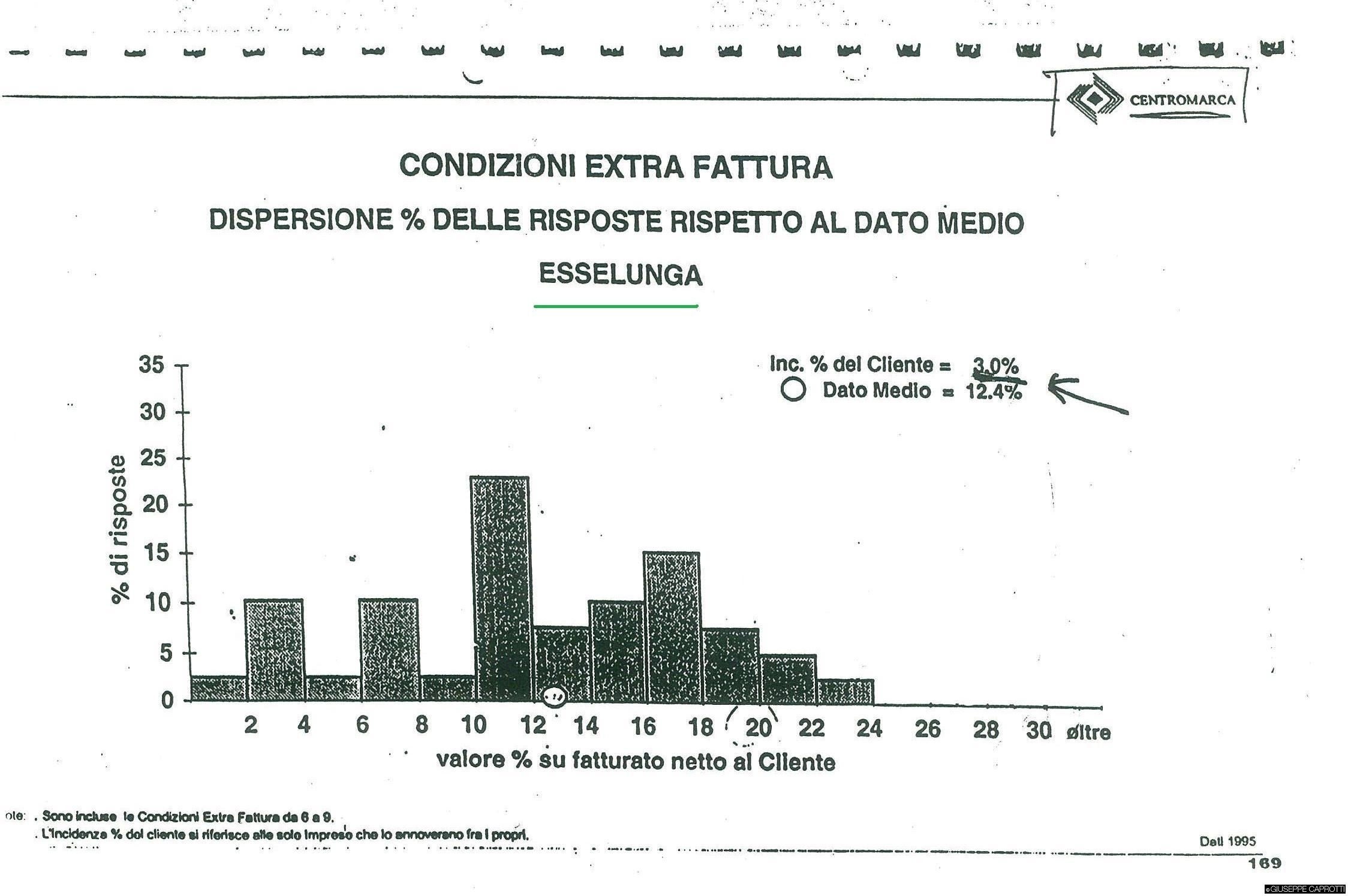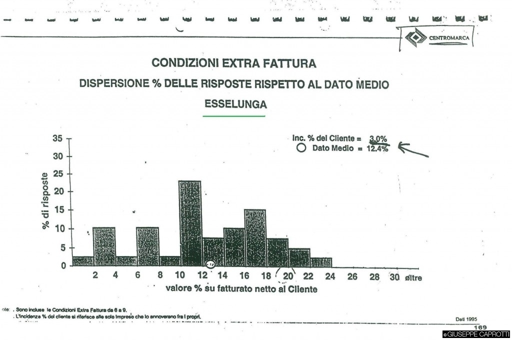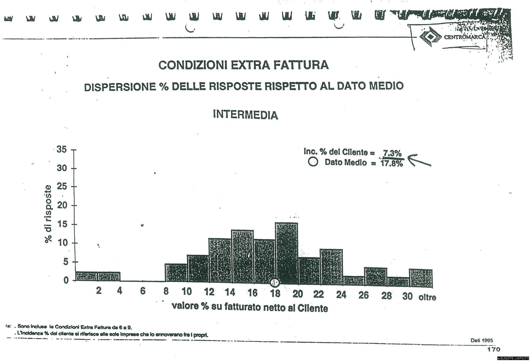 Questi dati (1995) erano tutti a ns. sfavore: una media del 12,4% di incidenza di contributi Extra Fattura contro 17,2% di GS e 17,8% di Intermedia (centrale di acquisti rivale)