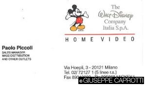 Sopra: il biglietto da visita di Paolo Piccoli della Walt Disney, uno dei primi fornitori del non food di Esselunga.