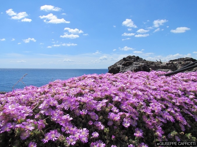 Favignana : vista di Marettimo con fiori