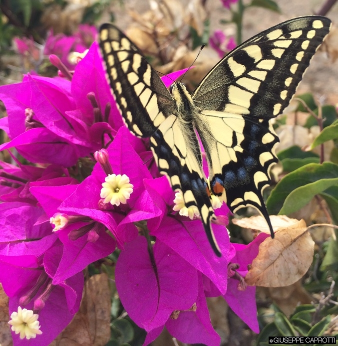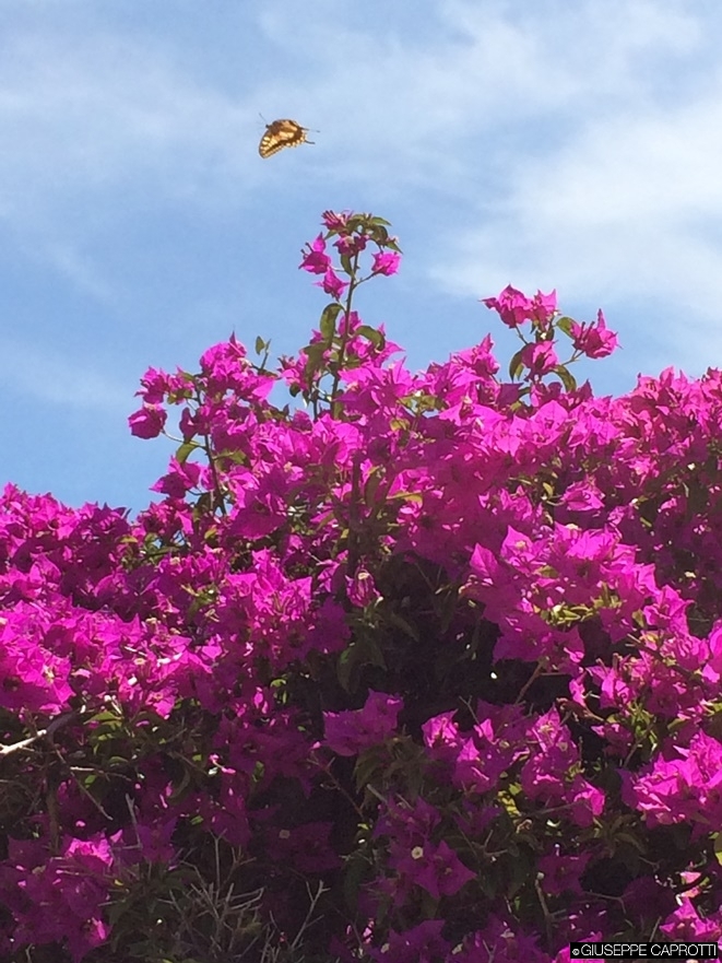 Favignana: la farfalla sulla bouganvillea