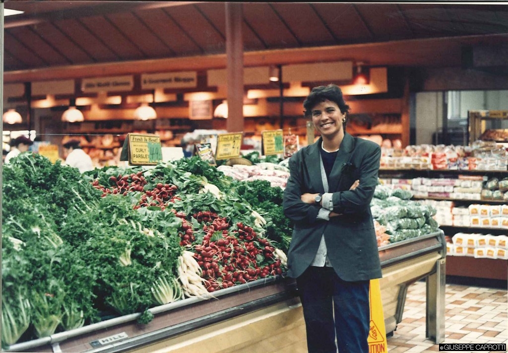Violetta Caprotti in visita di lavoro presso la catena Wegmans nello stato di New York nel 1987