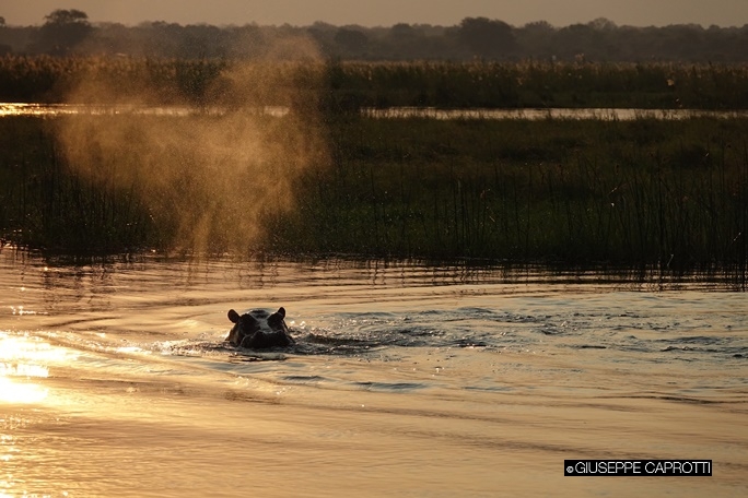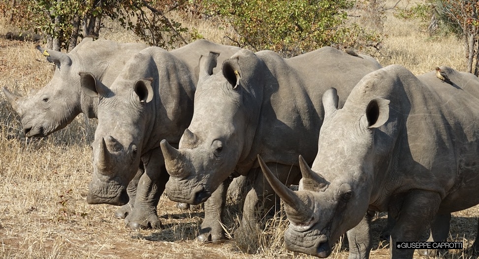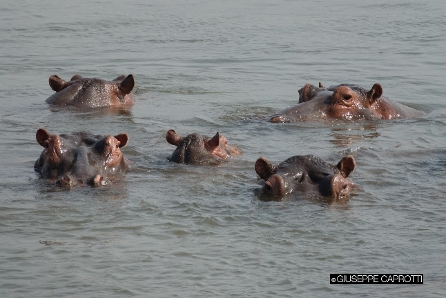 Zimbabwe 4 ippopotami adulti che proteggono un piccolo