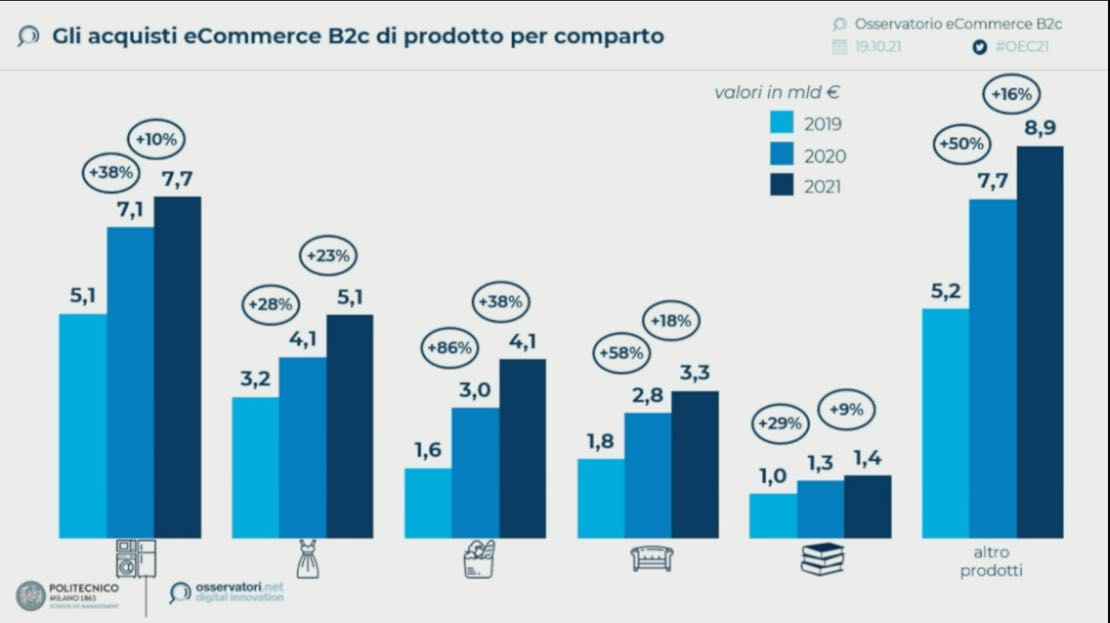 Un aumento del 21% rispetto al 2020, con il segmento del grocery che supera i 4 miliardi, +38% rispetto all’anno scorso.