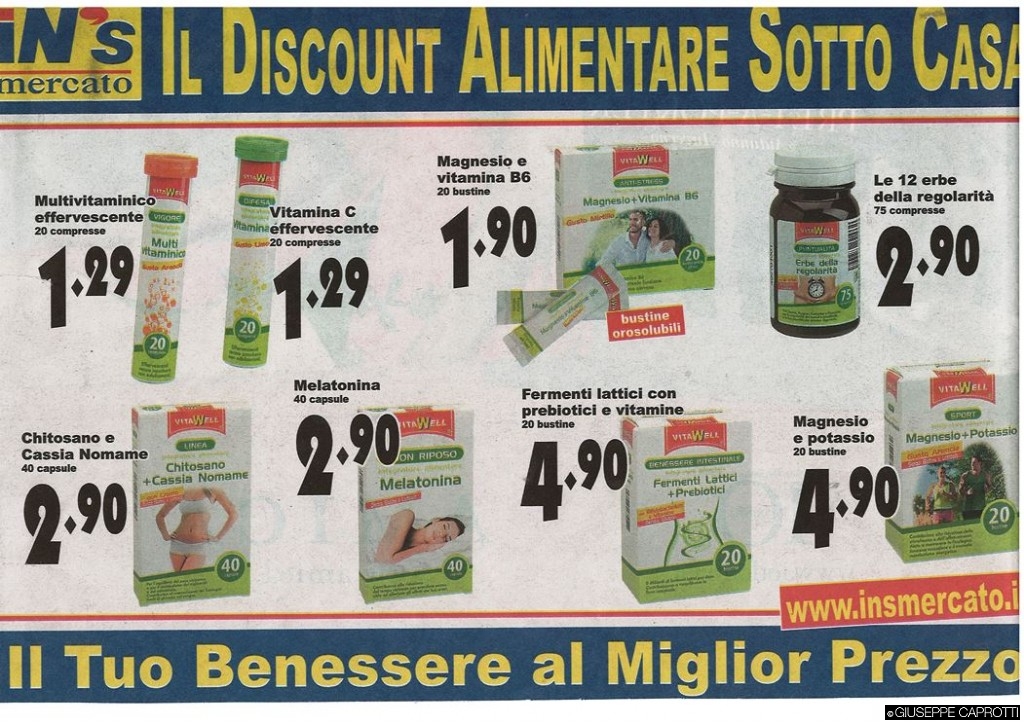 Qui sotto vedete la pubblicità di prodotti per il benessere della persona inseriti nell’assortimento della catena di discount IN’s