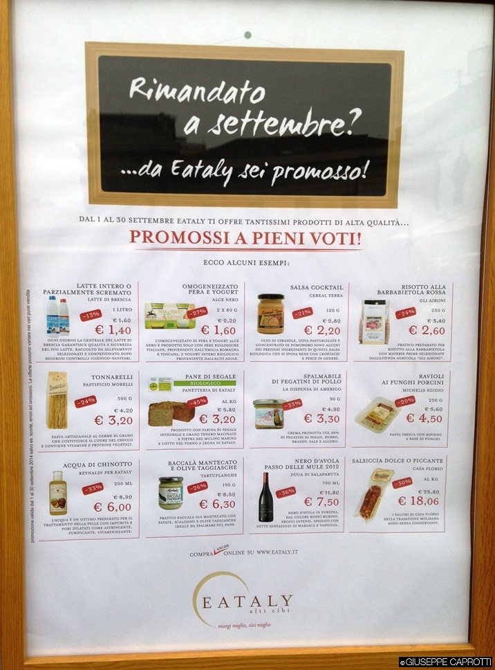 2) problemi di posizionamento: i prezzi di Eataly, nelle grandi marche, potrebbero essere più alti che alla Coop o all’Esselunga.