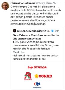 As always, Caprotti is the most careful analyst of Italian retail: the article is also worth reading by those working in other sectors because the social fallout can be significant, as was the case with Conad/Auchan
