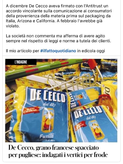 Note how, over time, the news has changed: first it seemed that the French wheat used by De Cecco had been ‘transformed’ into Apulian. On this subject, we recommend you also read this article.