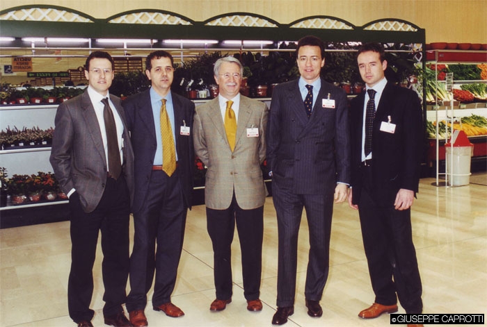 Giuseppe al centro con Violetta Caprotti e alcuni manager di Esselunga da sinistra Marino Fineschi , Gabriele Villa, Alberto Bianchi e Sergio Leogrande, prima dei due anni di lavoro che portarono ai superstore