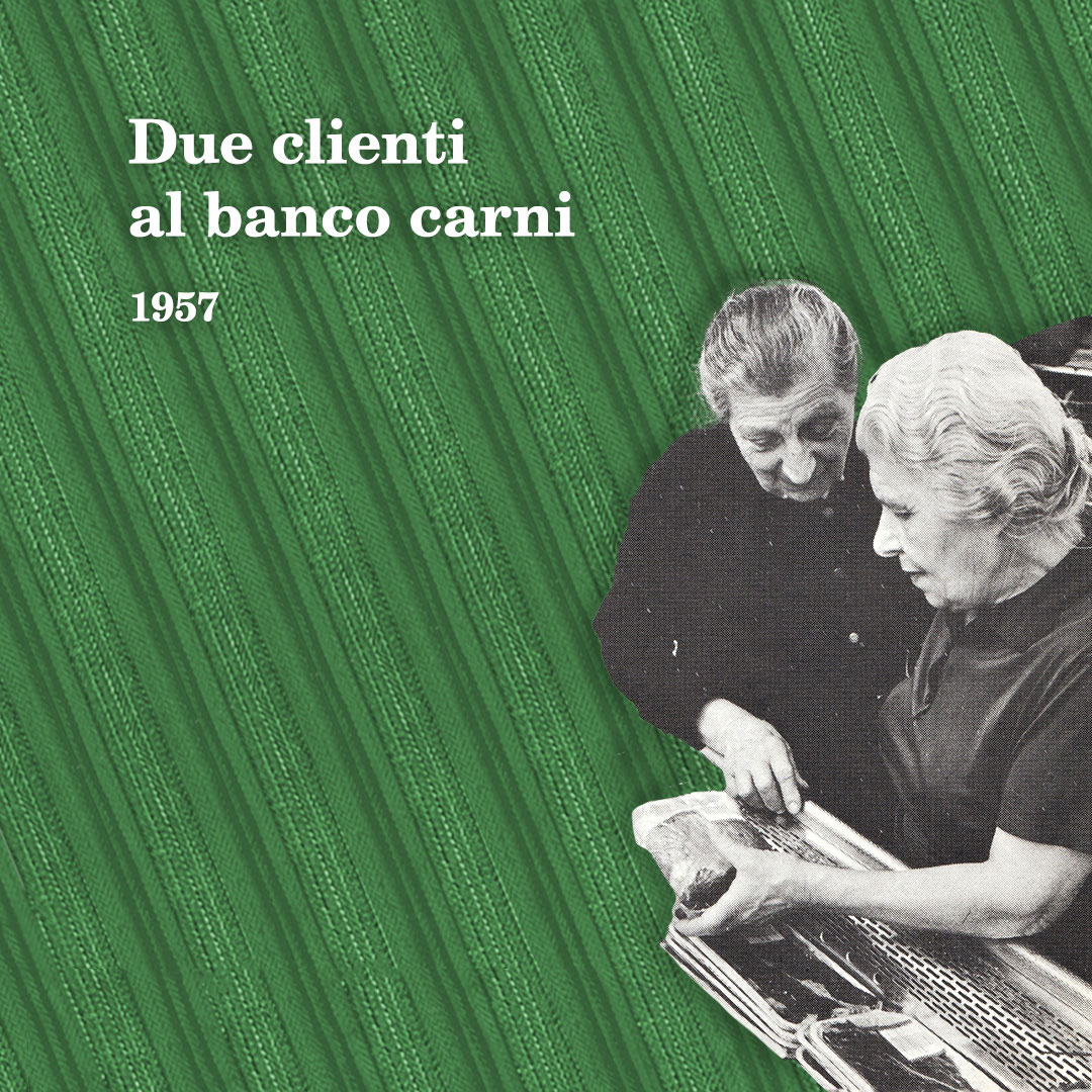 I primi clienti al banco carni, 1957