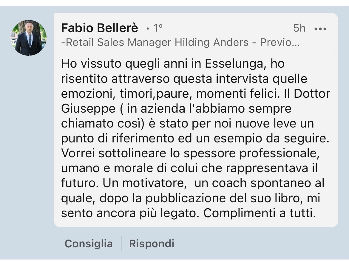 “I lived through those years in Esselunga, I felt through this interview those emotions, fears, happy moments. Dr Giuseppe (we always called him that in the company) was for us new recruits a reference point and an example to follow.