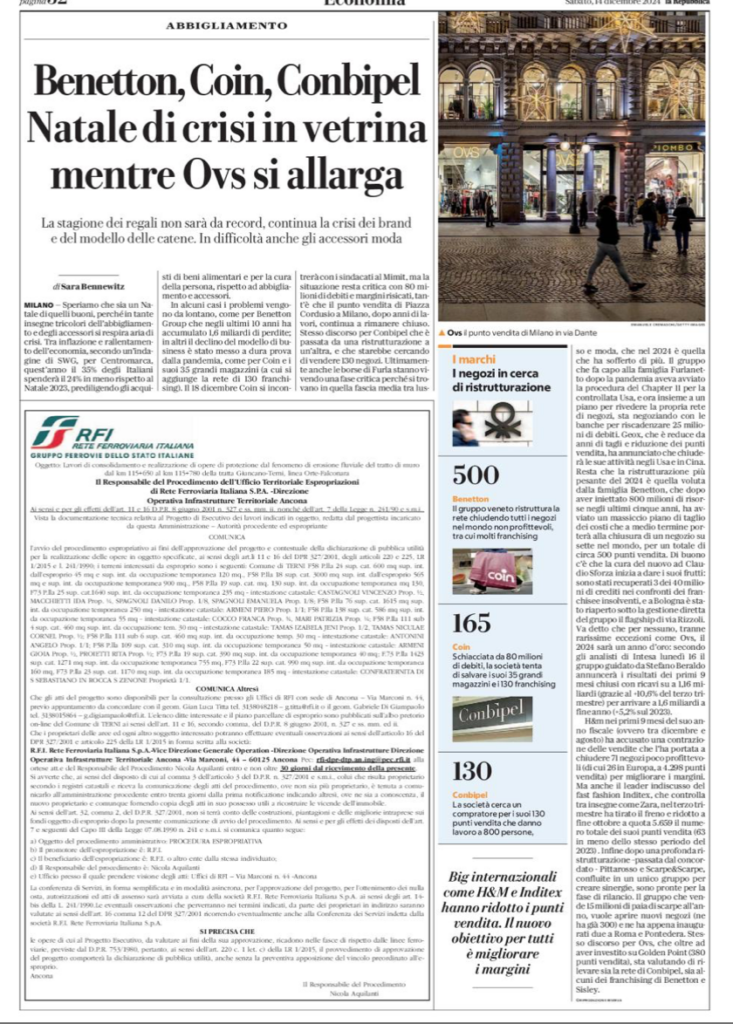 H&M and Zara (Inditex) reduced sales outlets. Republic 14 December 2024