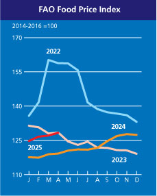 The FAO food price index, which tracks monthly changes in a basket of internationally traded food products, averaged 128.3 points in April, up 1 per cent from the March estimate of 127.1 points.