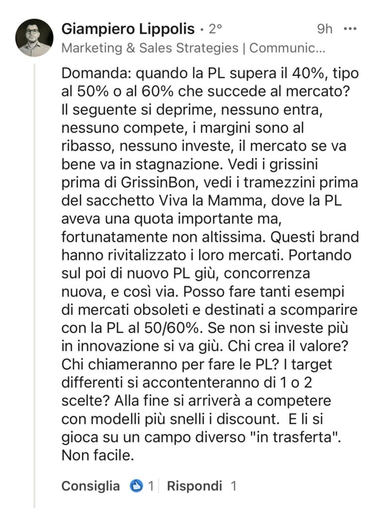 On private brand shares in Europe read here. Below is a question on LinkedIN and my response to it.