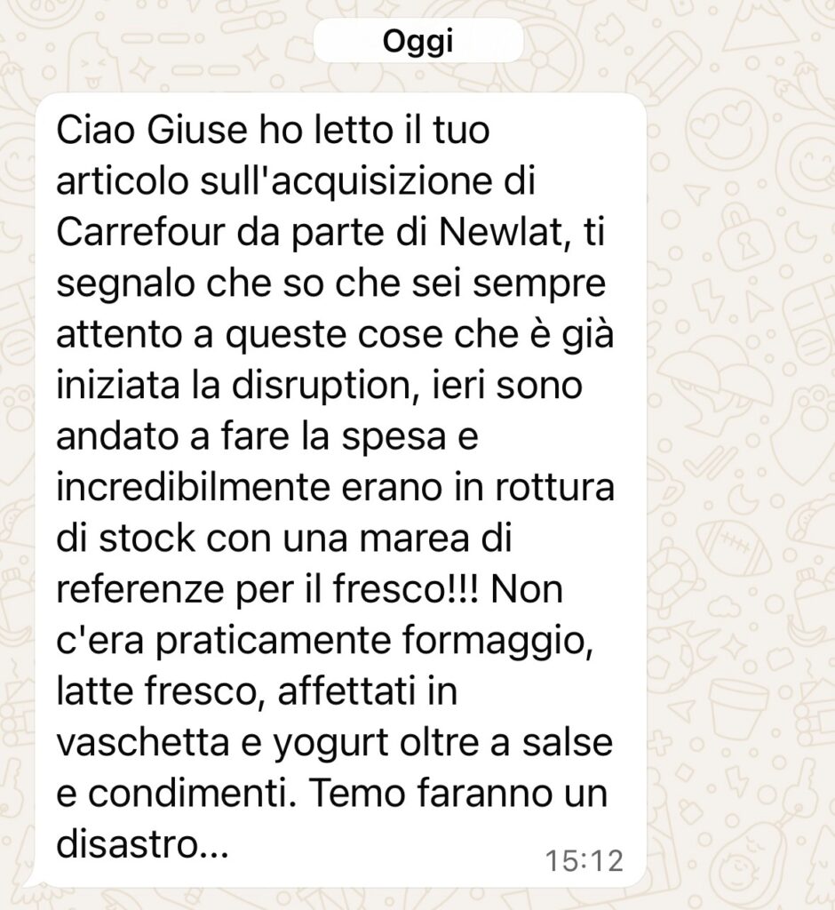 I won’t go into the financial figures, but I’ll just say‘do it quickly, finalise the acquisition quickly’ because in the large-scale retail trade it’s very quick to disavow the business, see below a message I received a few days ago regarding this article of mine.