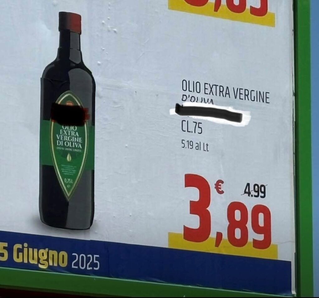 On this subject , olive oil is a good parameter for assessing the static nature of Italian agriculture, but also because the oil we put on the table is often very bad. Worth mentioning: a bill defining Italian extra virgin quality for the first time even though, unfortunately, Italian oil and supermarkets have once again become INCOMPATIBLE.