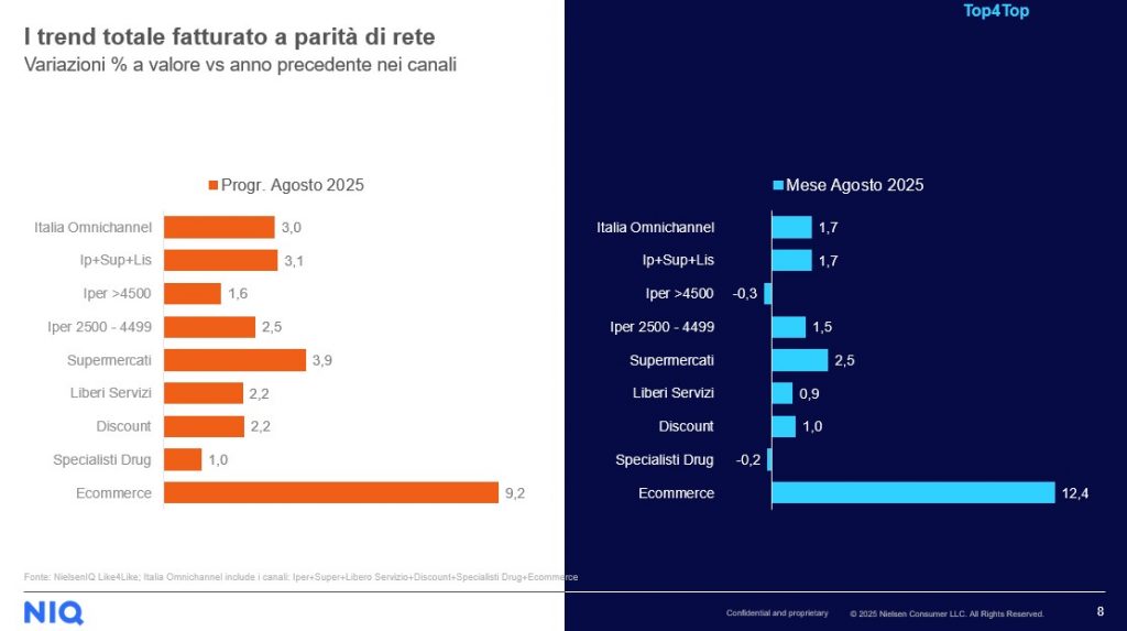 Below the growth on a like-for-like basis, constant network (with e-commerce leading the way).