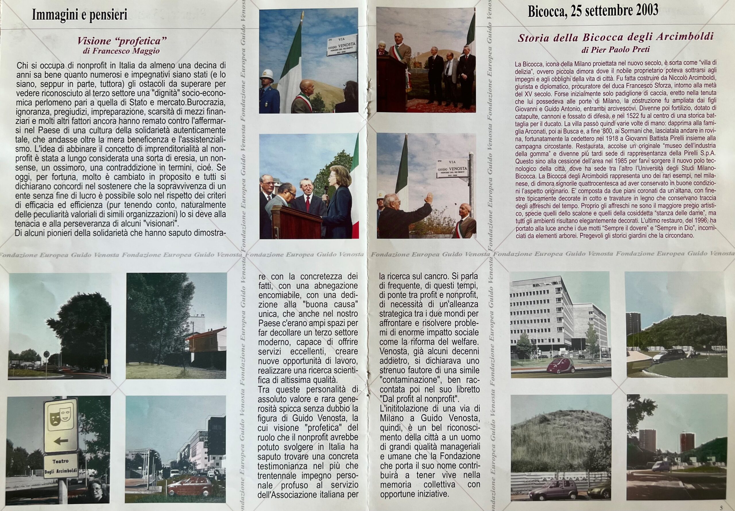The cover shows the then mayor of Milan Gabriele Albertini with Carla Fossati Bellani Venosta , who set up the Guido Venosta Foundation to honour her memory.