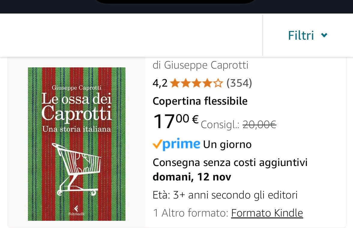 But Amazon does not apply this rule, at least now, and finding my book, Le Ossa dei Caprotti, at a 15% discount was genuinely surprising to me because Black Friday only starts on 21 November. Although, in the past, sales have always started before that date without anyone objecting.