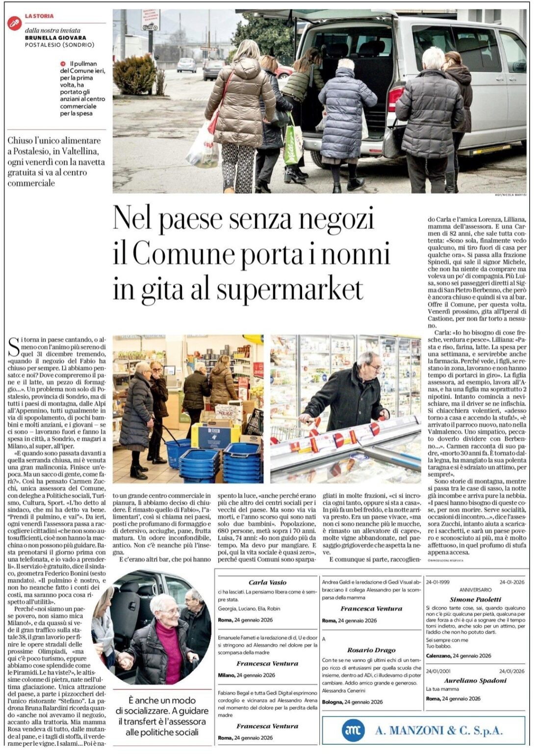 - 3 ‘In the country without shops, the municipality takes grandparents on a trip to the supermarket‘ (Repubblica 24 January 2026).