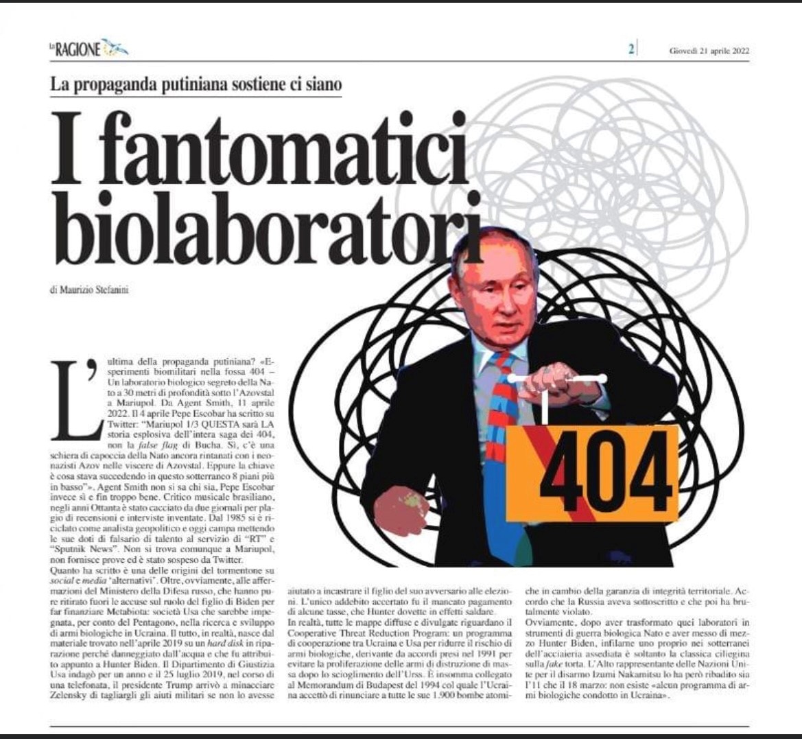 Kirillov was also an expert in ‘information warfare’, drafting and disseminating a series of artfully calibrated news stories against the Ukrainians and NATO. It was he who put his face into the disinformatsjia campaign on the secret virus study centres implanted by the US administration in several Ukrainian cities, showing documents recovered from Moscow troops and photos of the scientists involved.