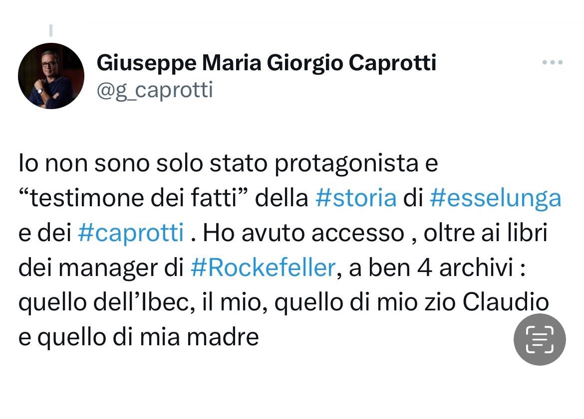 I have not only been a protagonist and ‘witness to the facts’ of the #esselunga and #Caprotti story. I had access, besides the books of #Rockefeller’s managers, to no less than four archives: Ibec’s, mine, my uncle Claudio Caprotti’s [Caprotti] and my mother’s [Giorgina Venosta].