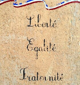 Below : Liberté, Egalité, Fraternité (photographed in a village in the South of France)