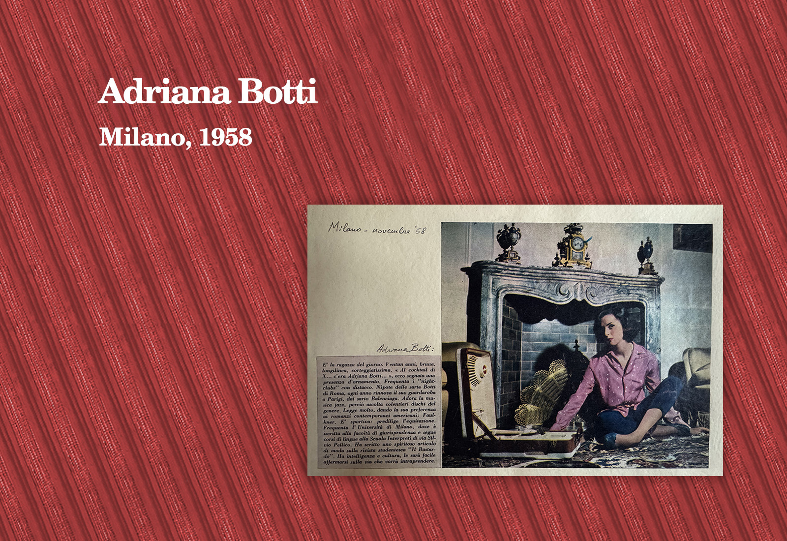 I find this episode significant from an era of Italian History that reads below: “Adriana Botti, the girl that Fellini had chosen from hundreds of candidates for the role of Maddalena in the film‘La dolce vita‘ (see ‘Oggi’ no. 8), informed the director that she could not accept the part.”