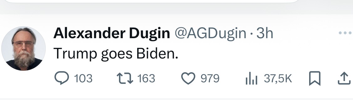Below: Alexander Dugin says Trump has become like Biden. In reality, for now, total confusion about Ukraine prevails .