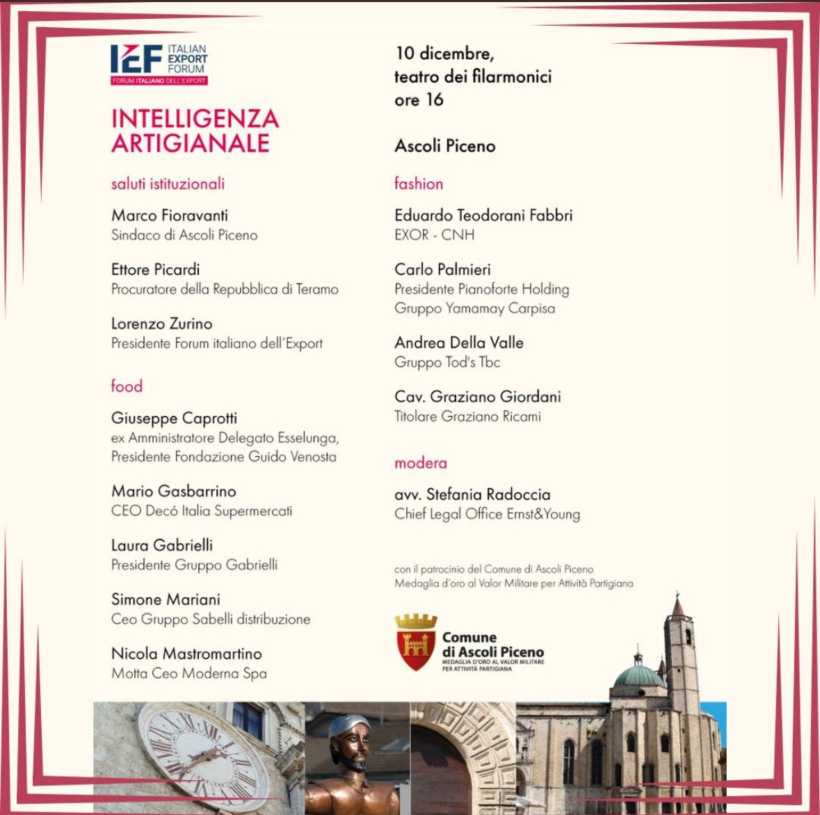 [vc_column_textOn 10 December 2024, the Teatro dei Filarmonici in Ascoli Piceno hosted ‘Artisan Intelligence’, an event dedicated to the future of Made in Italy exports, organised by IEF, Italian Export Forum. I took part in the round table dedicated to ‘Food’ with Lorenzo Zurino, Mario Gasbarrino, Laura Gabrielli, Simone Mariani and Nicola Mastromartino.