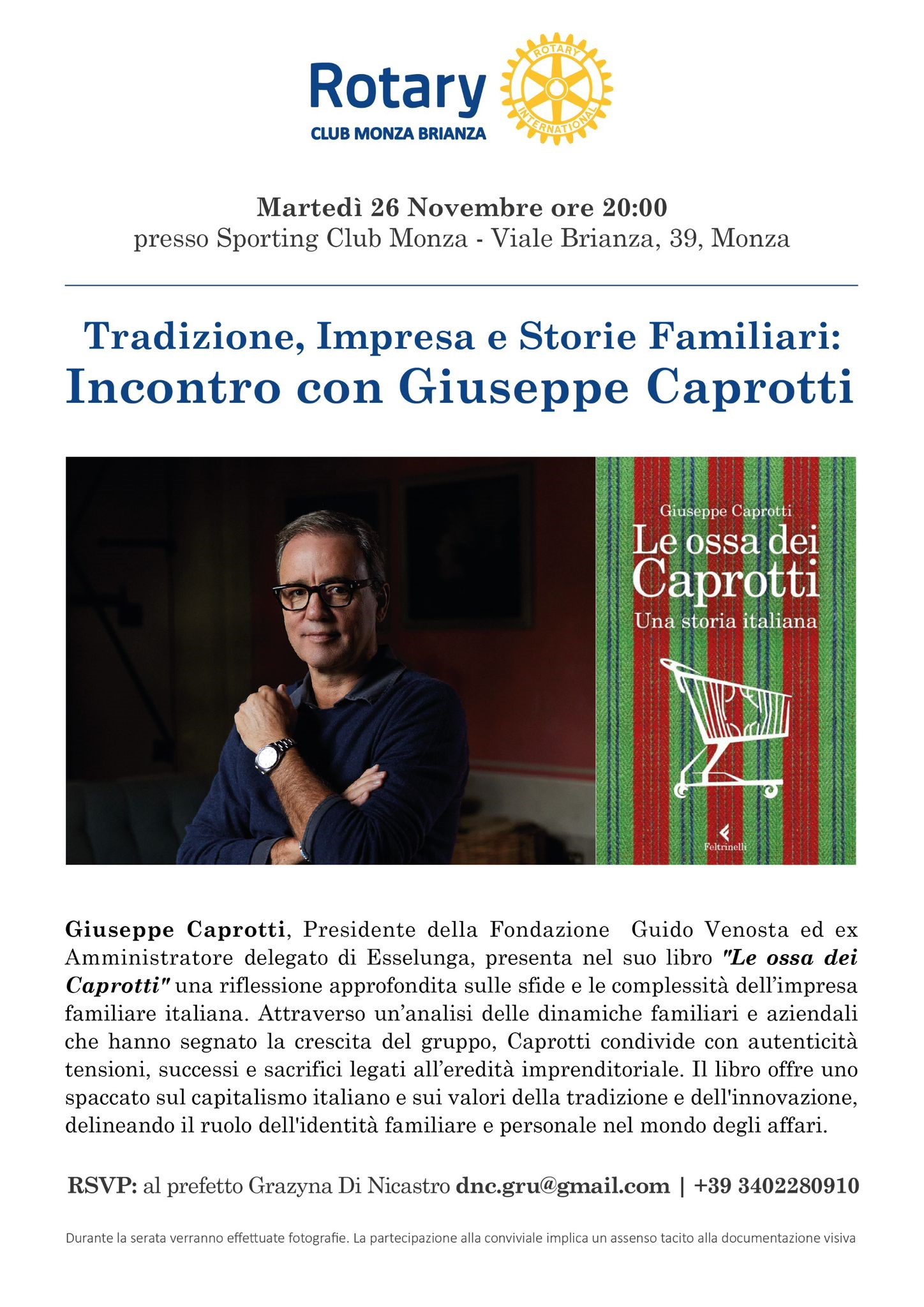 Presentation of the book ‘Le Ossa dei Caprotti’ at the Rotary Club Monza Brianza, 26 November 2024