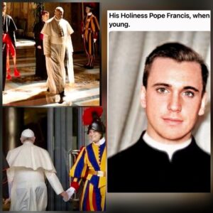 Below is a sel collage showing, among other photos of the pope, an image of Jorge Bergoglio as a young man.