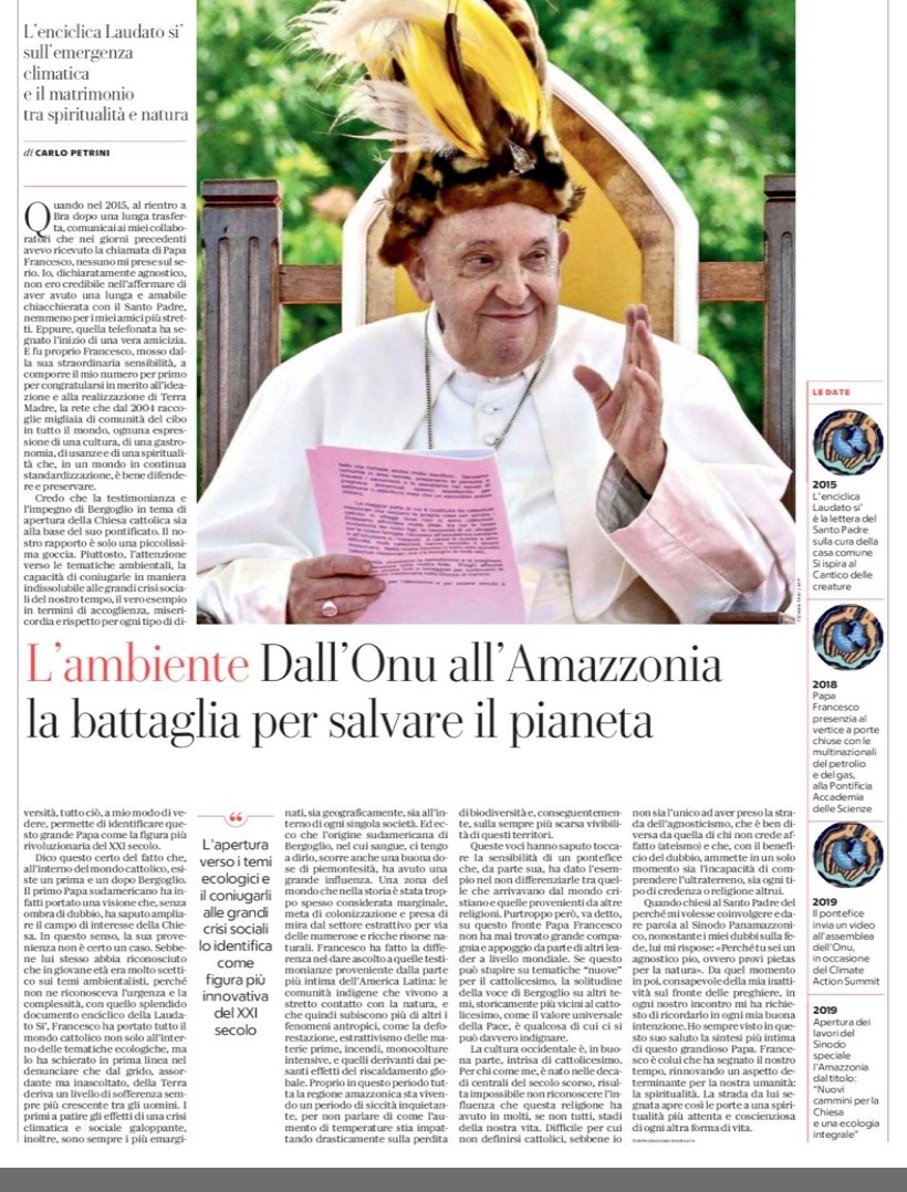 Below: an article on the spiritual and environmental legacy of Pope Francis (22 April 2025)