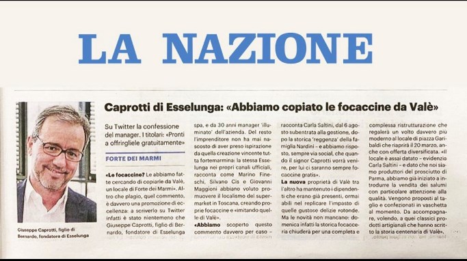 La Nazione, Egidio Bedogni’s ham and Esselunga’s scones