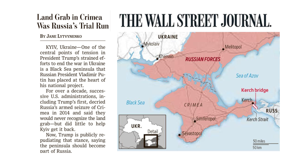 đź“– Read: ‘Land Grab in Crimea Was Russia’s Trial Run’ by Jane Lytvynenko – The Wall Street Journal 28 April 2025