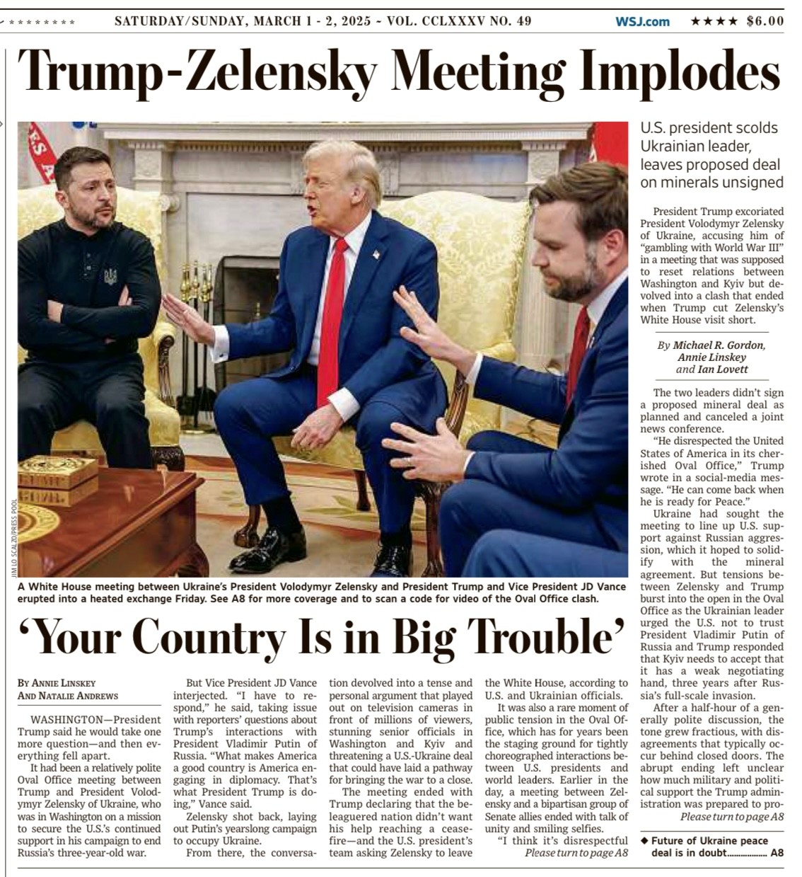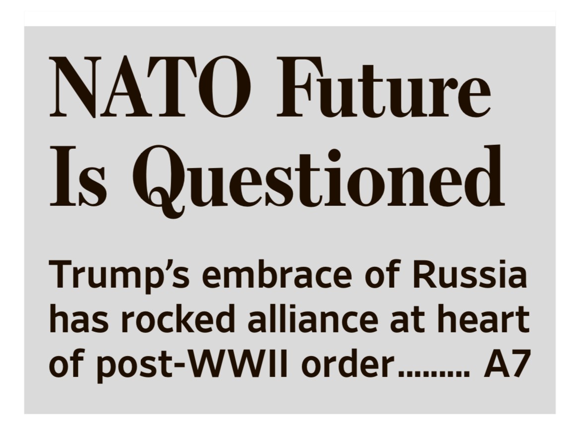 Compiled 17 February, updated 4 March 2025. Above: Nato’s future in doubt (The Wall Street Journal 4 March 2025).