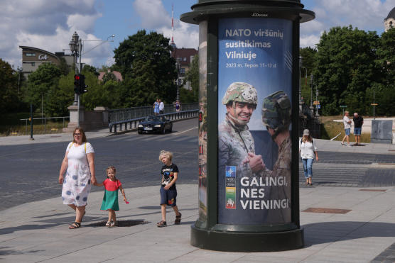Below: a poster announcing the NATO summit in Vilnius on 9 July 2023