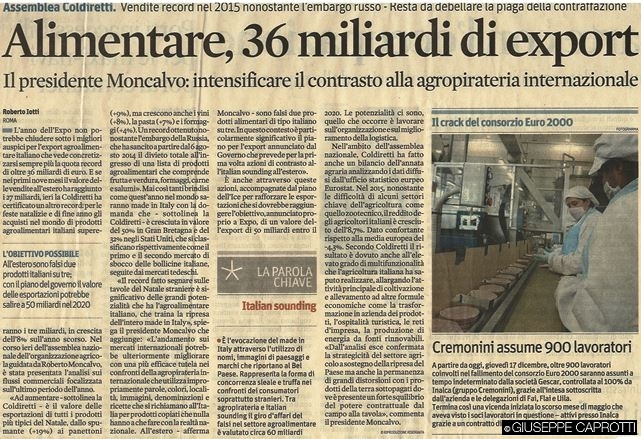 L’export, sulla spinta dell’Expo, vola ma all’estero sono falsi 2 prodotti “italiani” su 3