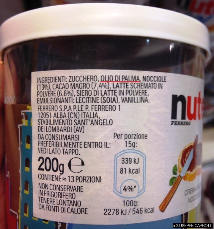 L’etichetta della Nutella con la scritta “olio di palma” è di quest’anno: