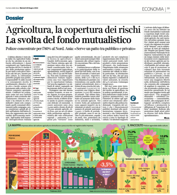 Fonte : Confagricoltura sul Corriere della Sera 28 giugno 2022 e Fresh Plaza: In 38 anni, scomparse quasi due aziende agricole su tre