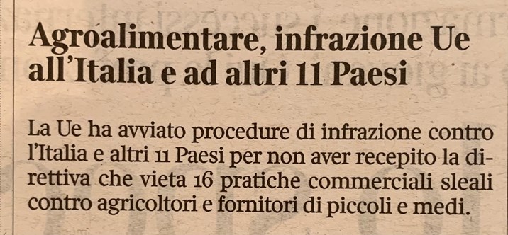 che non hanno recepito la direttiva che vieta 16 pratiche sleali contro agricoltori e fornitori piccoli e medi . Corriere della Sera 28 Luglio 2021