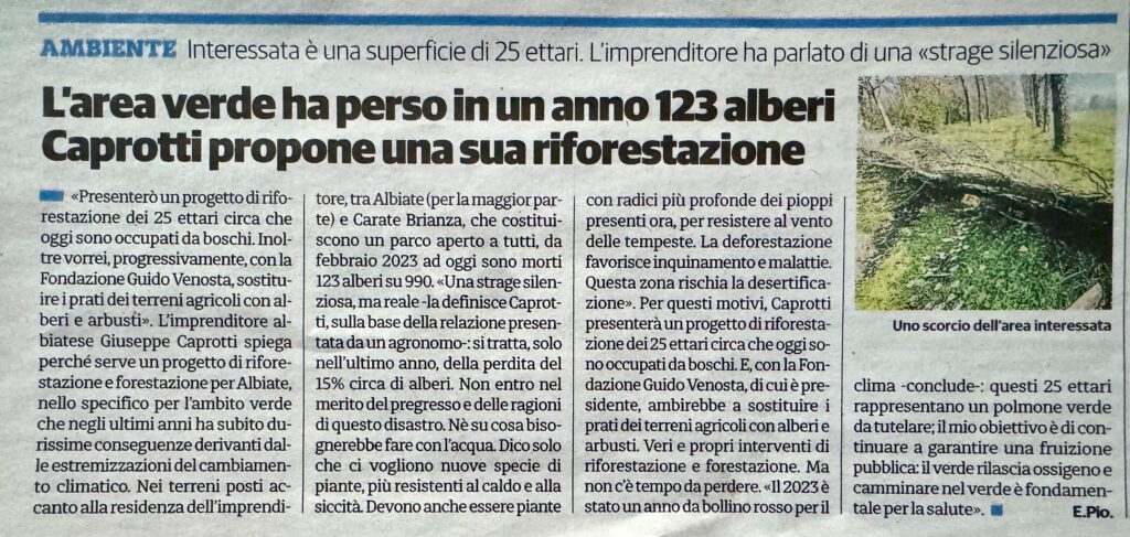dopo la deforestazione degli ultimi anni, con nuove specie. In campo la Fondazione Guido Venosta, contro il cambiamento climatico. Il Cittadino di Monza e Brianza.
