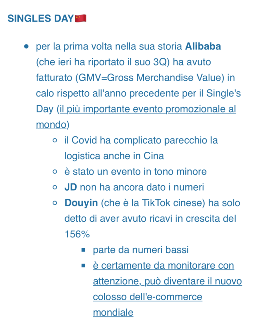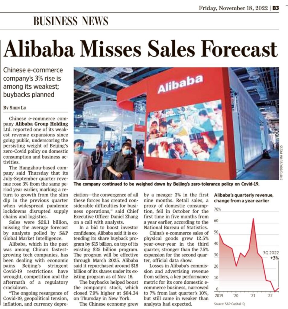 L’evento commerciale (e-commerce) è stato reso più difficoltoso dal Covid – 19 Inglobando. E il Wall Street Journal fa notare che Alibaba, che nell’ultimo trimestre, è cresciuta solo del 3% non ha raggiunto i suoi obiettivi di crescita.