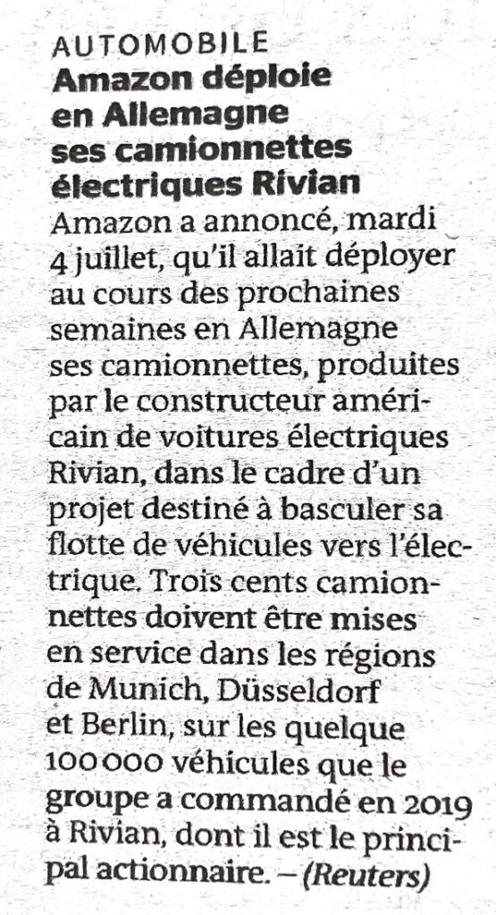 Il gigante di Seattle ne ha ordinati 100’000 alla sua controllata. Le Monde 5 luglio 2023. Sulle auto elettriche leggi qui.