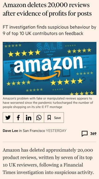 dopo un’inchiesta Financial Times. Un pò come è successo nel passato a Tripadvisor