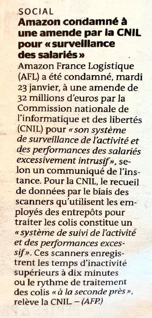 Amazon Francia : multa di 32 milioni di euro per “sorveglianza eccessivamente intrusiva dei dipendenti”